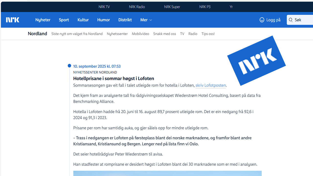 Det kjem fram av analyserte tall fra rådgiviningsselskapet Wiederstrøm Hotel Consulting, basert på data fra Benchmarking Alliance.